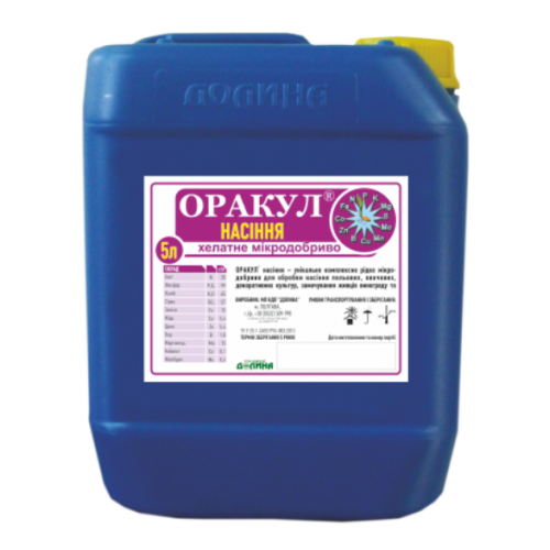 ОРАКУЛ НАСІННЯ – це унікальне комплексне рідке мікродобриво для обробки насіння польових, овочевих, декоративних культур, бульб картоплі, замочування живців винограду та плодово-ягідних культур з метою їх вкорінення.